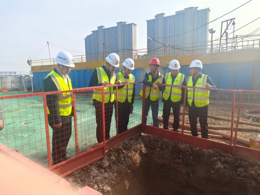 熊鵬輝、田少國到陜煤集團總部地?zé)犴椖恳约瓣兠航鹑谥行模ǘ冢┑責(zé)犴椖楷F(xiàn)場進行安全環(huán)保檢查